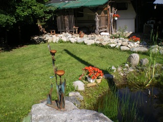 Beside this area lies 1 of our 3 vegetable gardens for a total of 4200 square feet of production capacity. We have a pond with a flowing fountain which works well for mosquito control. From the front to the back, the ground is prepared for wheel chair access using ramps, leading to barrier free living spaces.