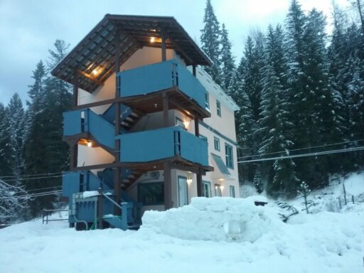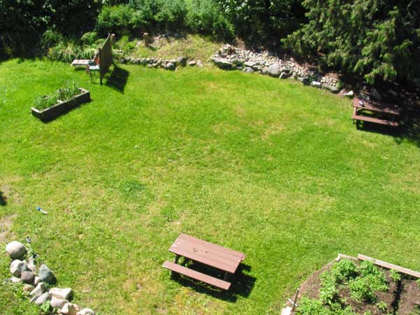 Along the highway side of the property lies our septic field, over which another vegetable garden flourishes. Along side the veggies is a row of fruit trees, sub-irrigated from the septic treatment pump. The aerobic sewage treatment system which is built for 9 rental units lies under the paved driveway loop. There are 5 gravel and 6 paved parking stalls, and a bike rack.