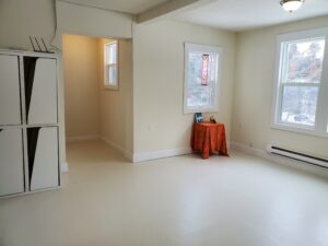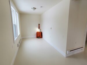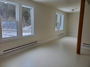 Unit C 900 SQ.FT. – One bedroom. Windows on three sides, with a nice view of the Common Grounds, the gardens and the green belt along the creek. Large size shower. Unit C Unit C Living Room